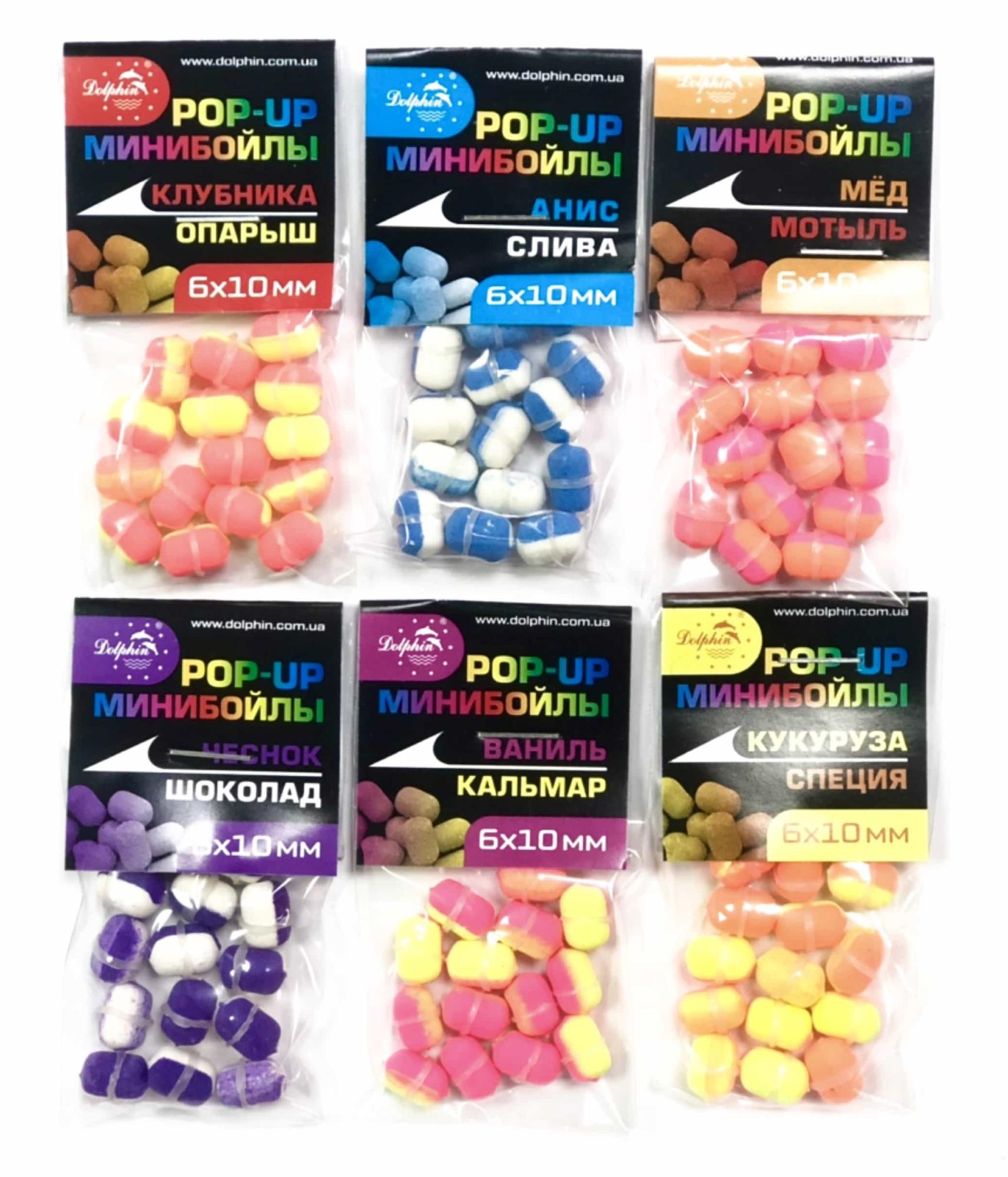 Мини бойлы Dolphin 6*10мм плавающие клубника-опарыш