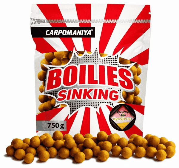 Бойлы тонущие КАРПОМАНИЯ с аром. кукурузы 14мм 750гр (пакет)