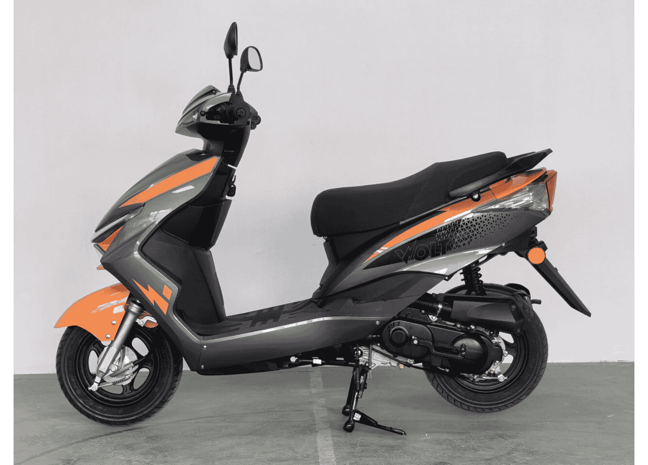 Вместо стандартного 50 см³ установлен 4-х тактный двигатель объемом 80 см³. Увеличение рабочего объема обеспечивает расчетную мощность до 4,5 л.с., что позволяет скутеру развивать максимальную скорость до 65 км/ч. Такая модификация существенно улучшает ускорение по сравнению с базовой версией. Трансмиссия остается классической и надежной — автоматический вариатор, гарантирующий простоту эксплуатации. Расход топлива при этом сохраняет экономичность, составляя около 2,5 л на 100 км.